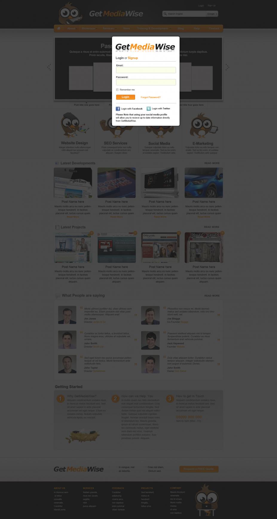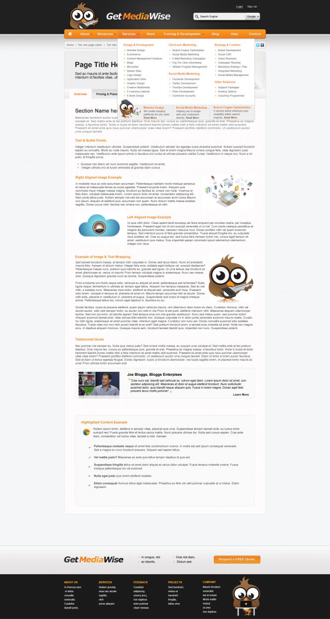 We don't know what specific Open Source CMS we should use. SO we will base it on your professional opinion, what ever one will be secure and fast. Please look at the PSD it has inner page designs. It has to be coded as good as possible, had to be secure, and fast. As well as optimised in the coding. Winner will be paid via PayPal. We will make initial deposit as well. Please find attached all images reference the project. -- Advanced Features (Excluding basic ones on the PSD design). Website Header and footer should be static on all pages of the website (Header & Footer, Backing layers held in Background) Modal login option with username & password (Modal Login on PSD) Dynamic Search (Google & Site Search) (Header > Search > Site Selection) Recommended Results on search (Header > Search > Input Focus on PSD) Mega Dropdown navigation menu with images (Header > Navigation > Rollovers & Dropdowns) Dynamic slider with four options ( Home > Slider ) Social menu bar on right hand side of window which stays fixed as user scrolls down the page. (Social Bar) Modal Image (when clicked on loads image at full size) / (Home > Content > Project) Inner page template with tab menu's (Inner Pages) Ability to change images through custom framework (Backend of website) Support for variety of multimedia formats within website > Video, Images, Text, Social Media. Web Sitemap linking all pages together based around breadcrumb and navigation Alt, meta tags for images with hyperlinks attached to pages, Text containing hyperlink should underline on mouse Over. Breadcrumb on Inner pages linking from different home, including categories into tiers. Gradient Rollovers on Images & Text. Services Bar, Navigation & Buttons. Triangle Quote button Top left handside to link to Quotation Tool. -- The work we expect to be done to 100% satisfaction. Please either PM me or add me on skype: getmediawise (add in the note that your asking about the contest). What I need to know: Your experience Your approximate time for project Your costing Your nationality Any work that you've done similar in the past.