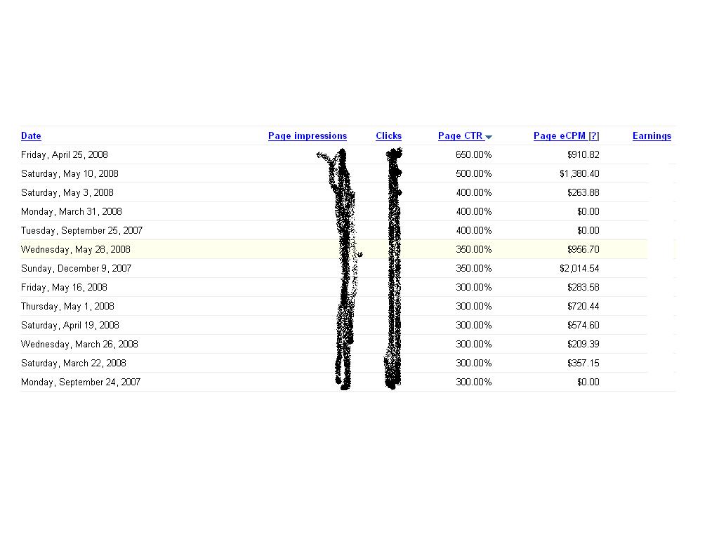 all the CTRs are over 300% and the max is 650% and the earning is also very high.