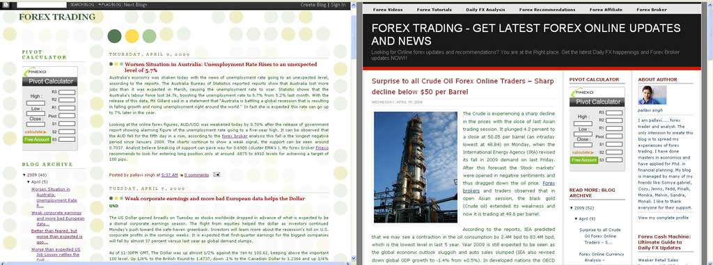 Hello members, In the recent google update i lost a PR and my blog PR fall to 2. Therefore i thought to change the design, make it popular and very professional. So i have changed the design. I am seeking your advice, reviews and analysis on the same. Blog: http://forextradingguru.blogspot.com/ Questions: 1. does this will adversely effect SEO and ranking? 2. How is the new look? 3. Is is looking professional? 4. Is placements of ADs good? 5. Any suggestion to make it further better. Thanks in advance for all your reviews and suggestions. Regards