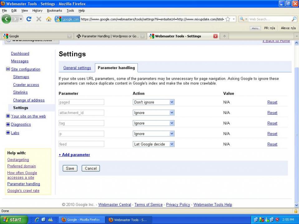 Parameter Handling | Wordpress or Google Webmaster Tools