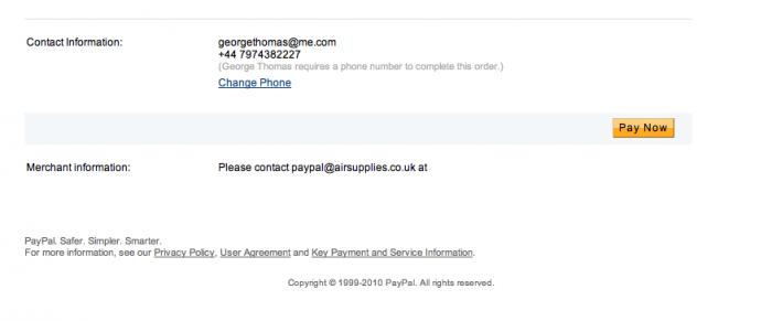 Hi Attached is a screen grab of our paypal checkout. I have just checked out myself to test it. Does anyone know how to change the bit at the bottom, it reads: Merchant Information: Please contact at It doesn't really make any sense!! Many thanks in advance, George