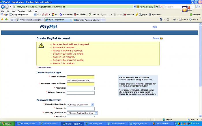 I want the validation to works like the paypal system, a box with red words will appear should the user failed to meet the registration requirement
