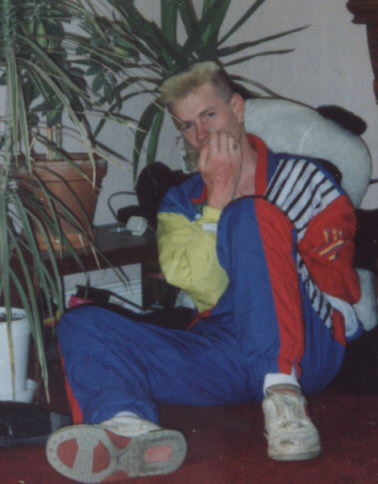 I just caught my mate trying to log into my account to upload this picture of me when I was about 15/16. He is totally clueless when it comes to computers so I am very impressed that he even managed to set up the scanner before scanning the photo that I have decided to upload it and give him the laugh he so richly deserves.. Check out the "stylish" shell suit and eerrr don't ask about the hair..