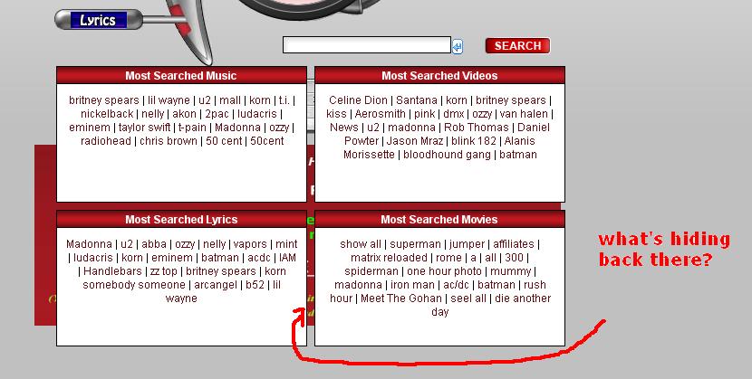 Given that the movies/music/lyrics/videos/tv/radio things hanging off the central graphic don't appear to do anything - why do you have the mouseover? I clicked on them expecting to go somewhere.