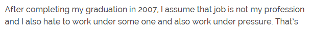 Lets translate that from Australian to a more politically correct version of English. As noted, your proficiency in written English is poor and suggests that it probably shouldn't be your language of choice for the blog. Not everyone wants to read English sites. India has a huge population - you could probably get a better readership locally than you could using English. Then there's your topic - when you were writing up your business plan so that you could justify the time and effort you're planning on putting into the site you did do a competitor review right? You saw how many tech blogs already exist? What is yours going to offer that the others can't or won't? How are you going to get that across to your readers quickly? I took a look at this page techcolite.com/idea-of-ott-advertising-best-deal-for-broadcasters and finished reading none the wiser. I couldn't tell if it was a general update for regular users, potential advertisers or what. I can see where you got this snippet of info from, but what does it mean to "touch"? This one comes across not so much as an article but as an ad, and sure enough there's a link at the bottom Did you cringe writing this? How hard is it to open a gif in paint and save as. Who worries about disk space these days when you can just slap another hard drive into your computer. The measly size of a graphic is of no consequence and a gif is usually smaller than a jpeg anyway. If your readers need to be shown how to save a gif as a jpeg then they probably are never going to need to know how to download a youtube video in Ubuntu. Installing it might be a good article. Advantages of using it might be a good article too. You need to decide who your readers are going to be, and their level of prior knowledge, and write consistently at that level.