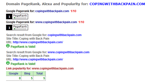 Selling PR 1 - Back Pain Keyword - GoDaddy Registered