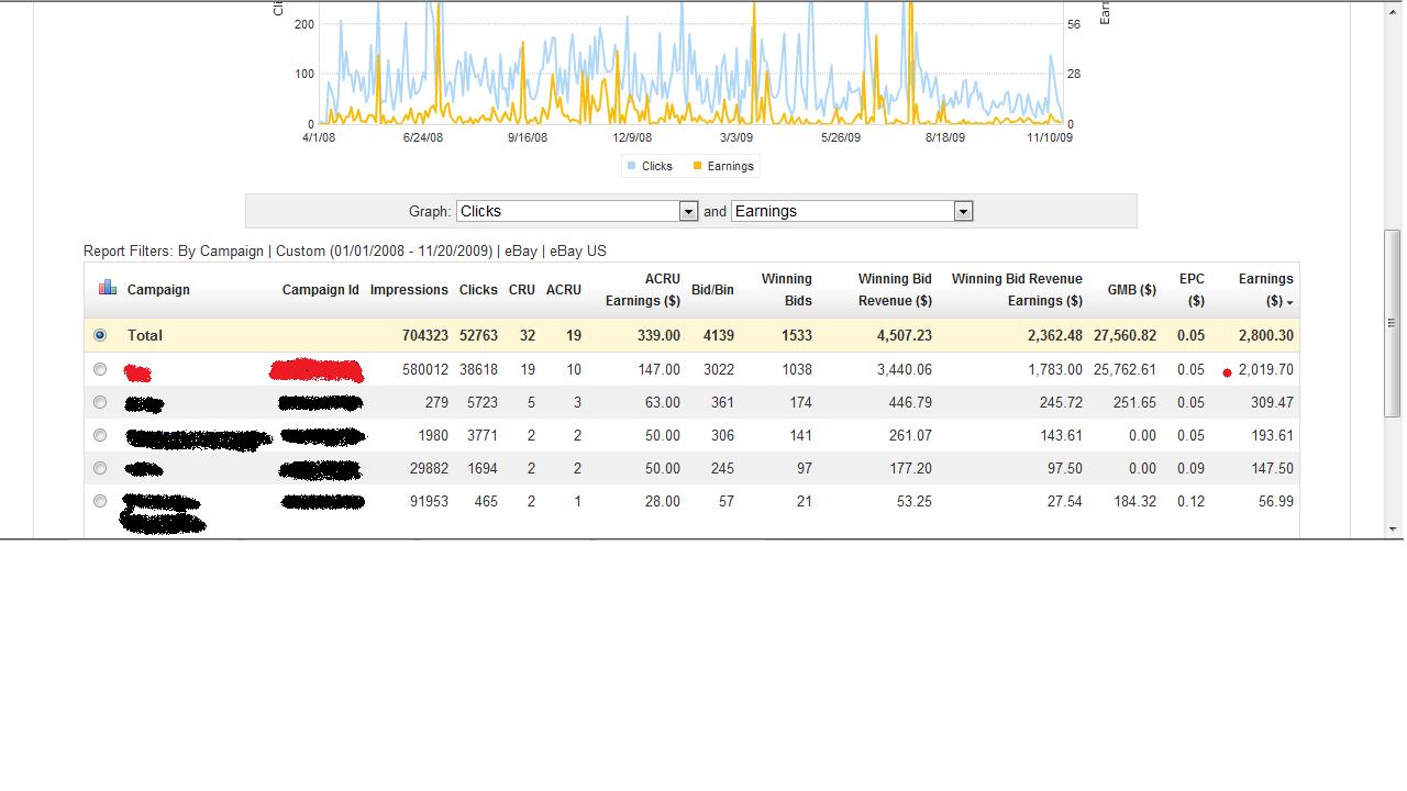A better deciding factor really is the earnings per click PER DAY with the new ebay affiliate system they have. Since this month is really the first month after the September testing month, that really is what matters. I have sites that generated hundreds per site and now are at $0.01 per click and trust me that HURTS.. A quality earning per click is a great judge as to the quality of the traffic being driven since that is all ebay cares about now, also all previous income was counting acru's which we don't get credit for anymore no matter how much they pretend it gets "melded" in with our earnings per click daily.
