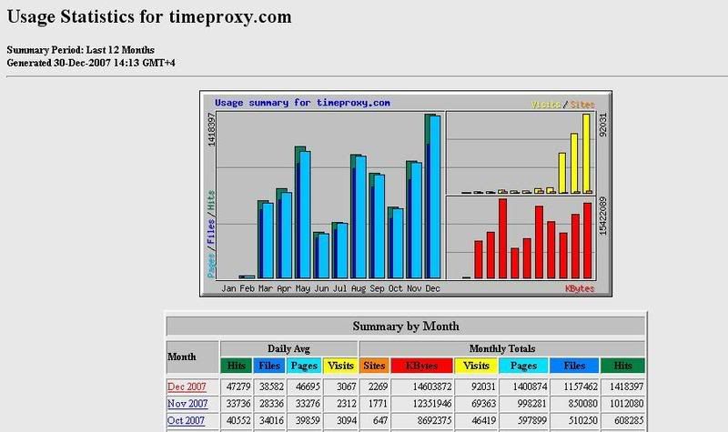 Looking to sell banner advertisements on my large proxy site. Site is PR4 and will provide a quality back link since we barely have any outgoing links. Site is located at: www.timeproxy.com The site has received over 92,000 visits this month, an average of over 3,066 visits daily. Additionally, TimeProxy has received over 1.4 million hits this month. Screenshots: Daily Stats, Monthly Stats Advertisement Opportunities: - 768x60(or smaller) banner on top of EVERY page that a user proxies: No Rotation! 1/1 Spots Available! $30/Month - 768x60(or smaller) banner where the Google ads are on the home page: 5/5 Spots Available $15/Month - Text Link at bottom of home page: Many Available $5/month Payment is accepted thru PayPal only. Please reply here, PM me, or email me at for questions or if interested. Thanks