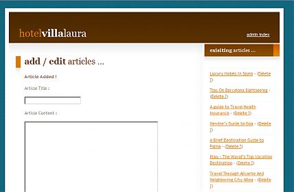 The custom backend is very simple and allows you to add/edit and delete all articles on the web site. See the screenshot for a preview.