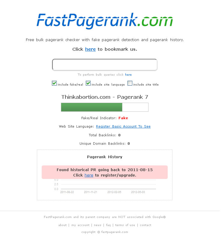 Fastpagerank.com? They think its fake: Not sure how you missed the bit where it says Fake/Real Indicator. I would agree with them. I mean, the site isn't even indexed by Google. Sounds like you have been duped by the seller.