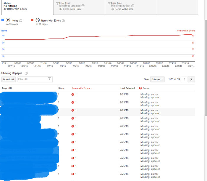 Somebody Help Please!! I have an WordPress site. My all post shows error in google webmaster. every single post says missing author and missing update. what does it mean?