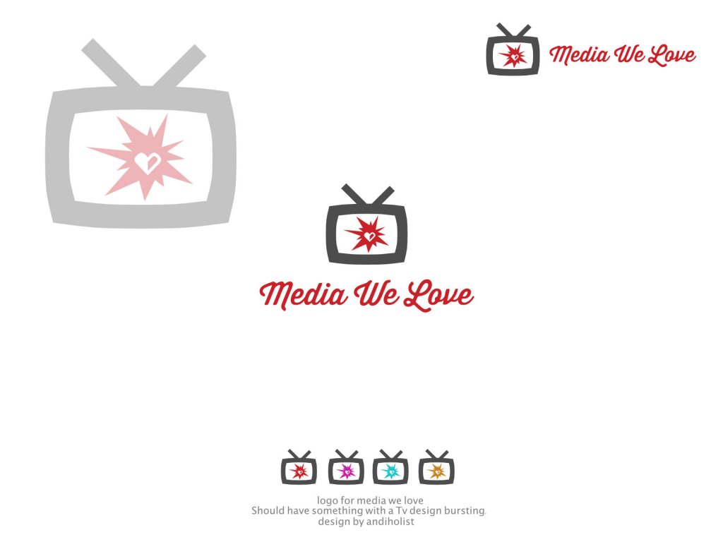 Need a logo for Media We Love Should have something with a Tv design bursting. Images sizes must fit social networks and a website. And provide transaparent image. Paying $10 via PayPal to the winner Extra $10 for a custom back splash image social networks and app.