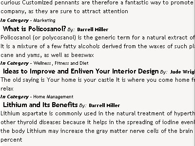 On my screen the fonts fade, melt, and merge something awful. I don't see any other comments mentioning this, but it is a singular experience for me. It is most obvious in the RECENT ARTICLES area. You might drop by the library and use its computer -- or ask a friend or so what they are experiencing. The articles I scanned are terrific. That is your most important factor for success. Because of it I will be linking to you from http://www.talewins.com/poster.htm -- as well as using the articles on my site as needed. Good work, a terrific future is in store.