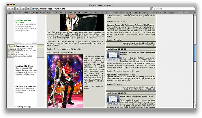 The forum is fine, it's the homepage that has layout issues. See my screenie: http://5nz.com/test/musicalfrogs.JPG