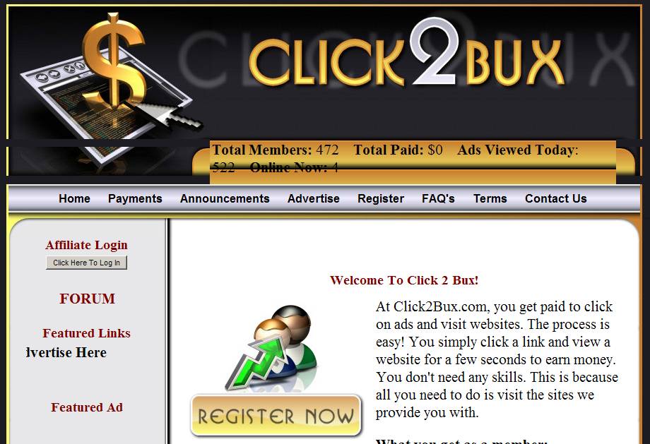 False user counts and ads viewed are not the best way to gather new members. When I signed up the number of members did not even move and from what I can see it was just a number put there and also how can there be over 500 ads view when I looked and only saw 1 banner, secondly I like the design just not the page loading times. This is 1 of the only reasons why I will not use many of these sites because they are made wrong. By this I mean people just falsify information just to make others think that there are lots of users and money paid out. This is just my thoughts nothing personal!