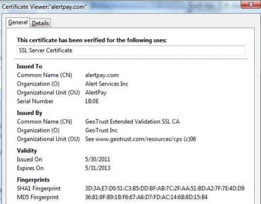 Please shut the FU*K UP!!!!!! He was talking about Verisign SSL. Can you see that alertpay is now using GeoTrust SSL???? So please use your fuc*ing eyes...before you bark.
