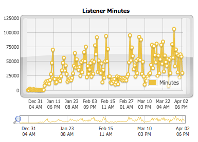 Hello, ***Before I begin, I would like to state that we went a different route, and started off as the best "commercial free" radio station* Due to rising costs/ growing pains, we are forced to sell some commercial slots. We had some interest in the beginning but thought it was best to keep it commercial free until now *** --- Please ignore the first/ original post --- For the first time ever, we are selling only TWO 30 second ad slots for our radio station, to see how it works out. Because of the amount of listeners we have, our server costs have skyrocketed, & our licensing fees have gone way up. We are an alternative rock internet radio station that streams 24x7 commercial free (until today). We play anything from 90's grunge to tomorrows indy alt rock. We are very socially active. When we have a live DJ on, we take requests on twitter using #i99MusicRadio. Right now I'm the only DJ that is live, but we have 4 remote DJ's that will be starting next week! We are selling the following deal: $75 - One 15-30 audio ad to be aired once every OTHER hour. (you provide the ad, or we have it recorded for an additional $50) This is for 30 days, on a month to month contract. This will also include 4 tweet advertisements + 1 FB advertisement within a 30 day period. Our twitter account (Over 17K Followers) is @i99MusicRadio Our Facebook is FB.com/i99Radio (over 2K likes) As of now, this is nonnegotiable. To be honest, I think this is a steal. If I had another business going right now I'd be using it to promote that instead of doing this. This is great for web hosting businesses, image upload hosts, dating websites, meme websites, social medias and much more! We don't really put ads on our website, because our listeners are based off of 3rd party iPhone/Android apps. We get very little traffic to our website. It's something we haven't focussed on (yet) but will very soon. Note, we are generally a commercial free radio station, but we think adding a 30 second ad slot every hour won't hurt for now. Remember, with the exception of our own concert ad, you will be the only ad running during the hour! Below are some listener stats! If you have any questions, feel free to just ask!
