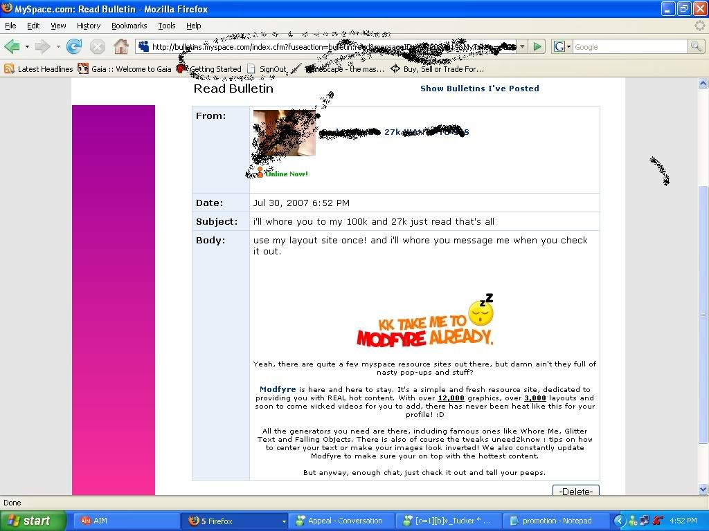 What is a myspace bulletin? I have never been on Myspace. Let me know what exactly it is. I might be interested as the volume is quite high. Do we get any backlinks also via these kinda bulletins? And whats the conversion rate would be?