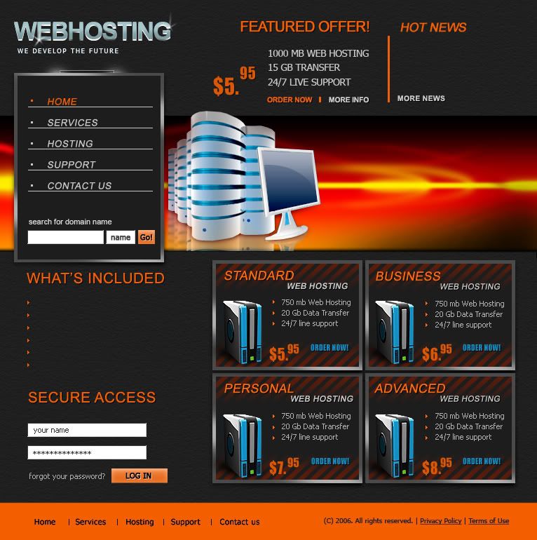 I have a lot of templates I am trying to sell fast. They are all unique custom templates that are fully coded. This means I am only selling one of each. Buyers will get psd and html files for each template. You can edit or resell any of them. Every template is $5. First reply for each one gets it. It seems to be hard to sell without links to them so I am putting links to a few that I think are the best. If they sell I will do more. PM me if youre interested in a category thats not here. Chances are I will have it. web hosting: http://i175.photobucket.com/albums/w144/stephen123456421/1_home-1.jpg business: http://i175.photobucket.com/albums/w144/stephen123456421/homepage.jpg news: http://i175.photobucket.com/albums/w144/stephen123456421/home.jpg music/entertainment: http://i175.photobucket.com/albums/w144/stephen123456421/1_homecopy.jpg online store: http://i175.photobucket.com/albums/w144/stephen123456421/onlinestore.jpg personal page: http://i175.photobucket.com/albums/w144/stephen123456421/Homecopy.jpg