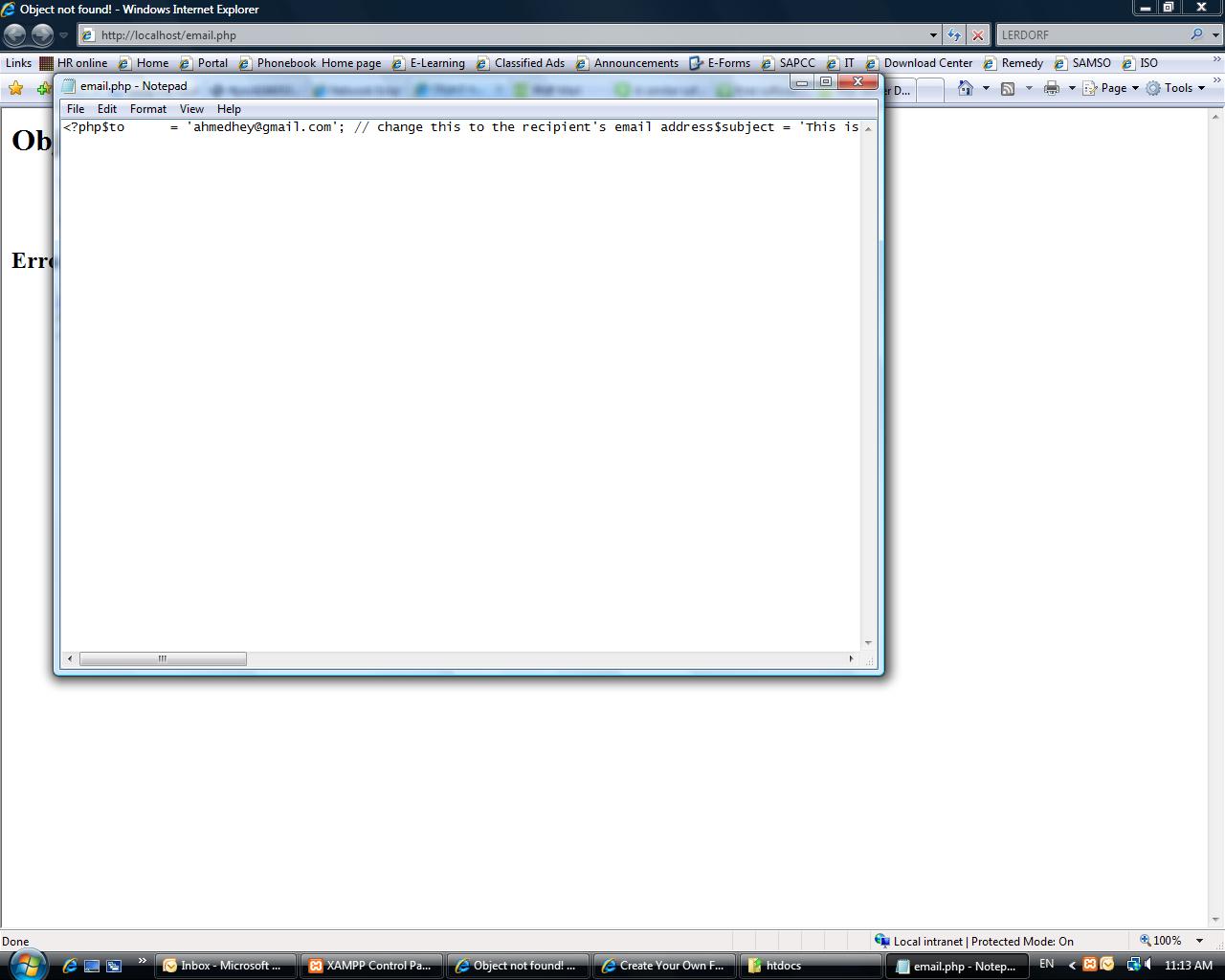 I think the problem ,there's some configurion for xampp to send email, but the problem as I mentioned befor I'm in this language.So,if someone knows how configure xampp,post plz?