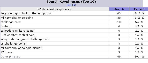Ok this is the first time this has ever shown on my site. Obviously this is a major concern for me. Attached is the screen shot right from my May AWSTATS. My jaw dropped when I seen number one, and please I am no ways trying to be disgusting, a pedophile, or trying to be banned from DP. I need to get this fixed asap and get my site away from anything like this. How could this be there? How do I find what's linking me to it? How do I get rid of it? This is pretty serious I think and need to get into the safe zone here. Thanks Adam