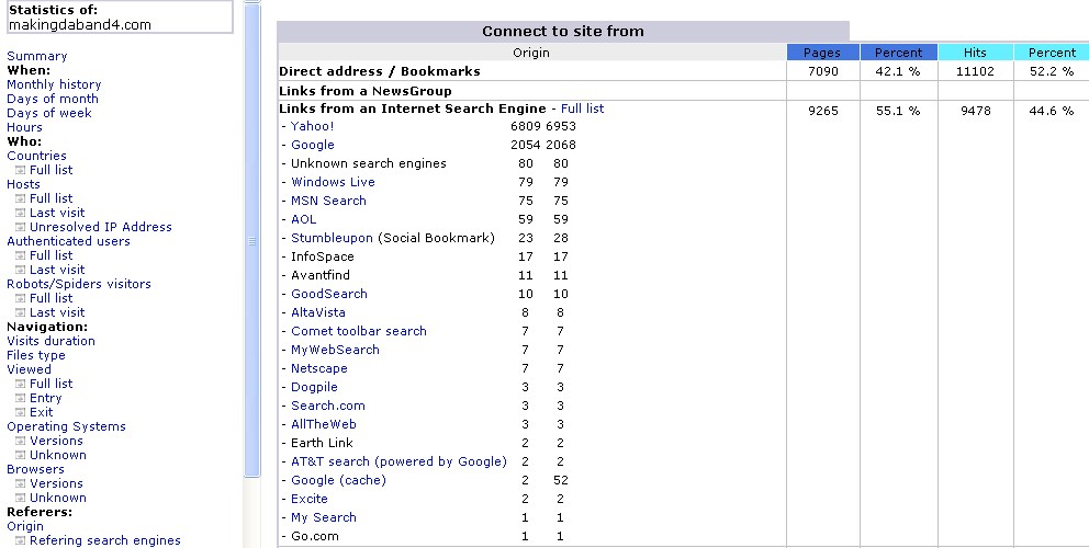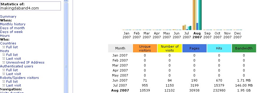 Betias..Awstats is also on this page . Main key word is "Making the band 4" Now maybe a good time to try to conquer "Making The Band". Theres more traffic with that KW.