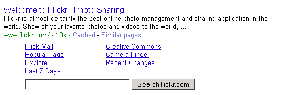 It is simply a search tool if you want to search something specifically inside the flickr.com site. For example, if you write travel in the serach flickr.com box then you will get the search results from within the flickr.com site only and not from any other source.