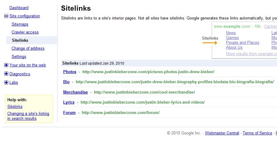 Site links are actually those pages that comes at SERP by Google which got maximum traffic than any other pages at your website. Those pages are highly visited by visitors, so Google use to put it in SERP along with your main result.