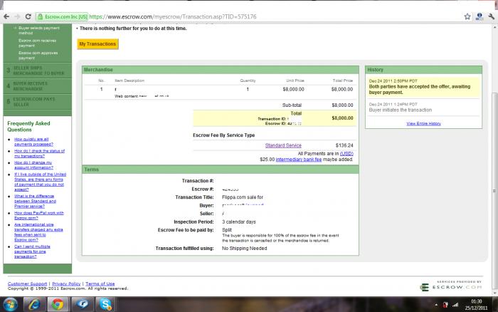 Hi there, my site sold my site on flippa and the transaction will go through escrow.com It's the first time me using escrow and i was wondering if someone could help me on this. Since i'm selling both the domain name, as well as the content on the site i was wondering if the deal was set up wrong on Escrow. This is the transaction Also the inspection period has been set to three days, can someone give me a bit of an insight into this. Also what should i do when the buyer wires over the funds on escrow.com straight away transfer the domain and the website to them? thanks again Should the deal be broken down into two parts, 4,000 for the domain, then 4000 for the content of the site.