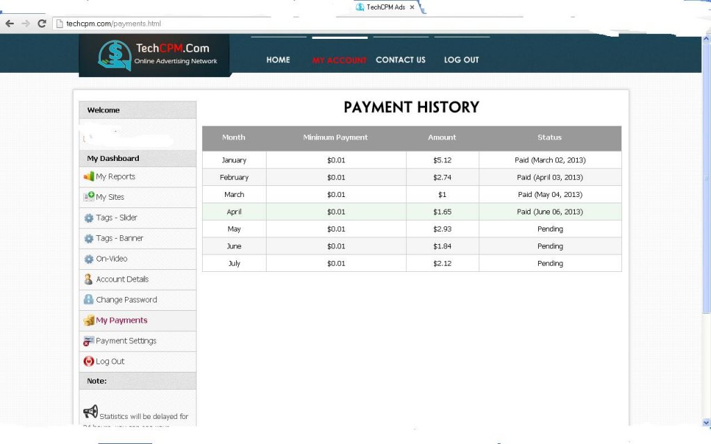 Forget about them, they are scam ad network. They stop paying from April 2013 onwards. I'm not so lucky cause I just start promoting them on April and now even a single cent I dont get any from them.