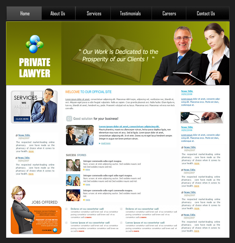 Hi, Here is our template. Please let me know in case you like them. We can provide this for you at a discounted rate. http://maestriatech.com/graphics/privatelawyer.jpg Regards Nick