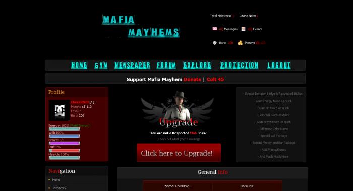 Hey guys, I need some help developing a new mmorpg, I dont have a host or plan on spending any money (im only 17), I just plan to learn from this so in the future I do open up a new game. The game is built on Ravans mafia script and ive tweaked a few things here and there but would still like to change some things. If you're not going to help i'll ask you not to criticize, thanks. The games website is: http://mafiamayhems.x10.mx/ Here are some screenshots, again, DONT CRITICIZE, I'm doing this to learn: THANK YOU!