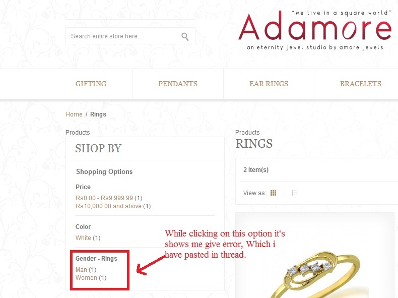 You cannot define a correlation name 'gender_ring_idx' more than once The code is appearing while i have added the attributes in backend and while clicking on the attribute on front end it's shows an error Trace: #0 /home1/sevabhav/public_html/adamore/lib/Varien/Db/Select.php(281): Zend_Db_Select->_join('inner join', Array, 'gender_ring_idx...', Array, NULL) #1 /home1/sevabhav/public_html/adamore/lib/Zend/Db/Select.php(336): Varien_Db_Select->_join('inner join', Array, 'gender_ring_idx...', Array, NULL) #2 /home1/sevabhav/public_html/adamore/lib/Zend/Db/Select.php(315): Zend_Db_Select->joinInner(Array, 'gender_ring_idx...', Array, NULL) #3 /home1/sevabhav/public_html/adamore/app/code/core/Mage/Catalog/Model/Resource/Layer/Filter/Attribute.php(70): Zend_Db_Select->join(Array, 'gender_ring_idx...', Array) #4 /home1/sevabhav/public_html/adamore/app/code/core/Mage/Catalog/Model/Layer/Filter/Attribute.php(94): Mage_Catalog_Model_Resource_Layer_Filter_Attribute->applyFilterToCollection(Object(Mage_Catalog_Model_Layer_Filter_Attribute), '14') #5 /home1/sevabhav/public_html/adamore/app/code/core/Mage/Catalog/Block/Layer/Filter/Abstract.php(91): Mage_Catalog_Model_Layer_Filter_Attribute->apply(Object(Mage_Core_Controller_Request_Http), Object(Mage_Catalog_Block_Layer_Filter_Attribute)) #6 /home1/sevabhav/public_html/adamore/app/code/core/Mage/Catalog/Block/Layer/Filter/Abstract.php(73): Mage_Catalog_Block_Layer_Filter_Abstract->_initFilter() #7 /home1/sevabhav/public_html/adamore/app/code/core/Mage/Catalog/Block/Layer/View.php(136): Mage_Catalog_Block_Layer_Filter_Abstract->init() #8 /home1/sevabhav/public_html/adamore/app/code/core/Mage/Core/Block/Abstract.php(238): Mage_Catalog_Block_Layer_View->_prepareLayout() #9 /home1/sevabhav/public_html/adamore/app/code/core/Mage/Core/Model/Layout.php(456): Mage_Core_Block_Abstract->setLayout(Object(Mage_Core_Model_Layout)) #10 /home1/sevabhav/public_html/adamore/app/code/core/Mage/Core/Model/Layout.php(472): Mage_Core_Model_Layout->createBlock('catalog/layer_v...', 'catalog.rightna...') #11 /home1/sevabhav/public_html/adamore/app/code/core/Mage/Core/Model/Layout.php(239): Mage_Core_Model_Layout->addBlock('catalog/layer_v...', 'catalog.rightna...') #12 /home1/sevabhav/public_html/adamore/app/code/core/Mage/Core/Model/Layout.php(205): Mage_Core_Model_Layout->_generateBlock(Object(Mage_Core_Model_Layout_Element), Object(Mage_Core_Model_Layout_Element)) #13 /home1/sevabhav/public_html/adamore/app/code/core/Mage/Core/Model/Layout.php(210): Mage_Core_Model_Layout->generateBlocks(Object(Mage_Core_Model_Layout_Element)) #14 /home1/sevabhav/public_html/adamore/app/code/core/Mage/Core/Controller/Varien/Action.php(344): Mage_Core_Model_Layout->generateBlocks() #15 /home1/sevabhav/public_html/adamore/app/code/core/Mage/Catalog/controllers/CategoryController.php(146): Mage_Core_Controller_Varien_Action->generateLayoutBlocks() #16 /home1/sevabhav/public_html/adamore/app/code/core/Mage/Core/Controller/Varien/Action.php(419): Mage_Catalog_CategoryController->viewAction() #17 /home1/sevabhav/public_html/adamore/app/code/core/Mage/Core/Controller/Varien/Router/Standard.php(250): Mage_Core_Controller_Varien_Action->dispatch('view') #18 /home1/sevabhav/public_html/adamore/app/code/core/Mage/Core/Controller/Varien/Front.php(176): Mage_Core_Controller_Varien_Router_Standard->match(Object(Mage_Core_Controller_Request_Http)) #19 /home1/sevabhav/public_html/adamore/app/code/core/Mage/Core/Model/App.php(354): Mage_Core_Controller_Varien_Front->dispatch() #20 /home1/sevabhav/public_html/adamore/app/Mage.php(683): Mage_Core_Model_App->run(Array) #21 /home1/sevabhav/public_html/adamore/index.php(87): Mage::run('', 'store') #22 {main} Code (markup):