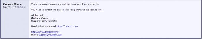 Dear Mr. drivemecrzy (with many emails, I do not remember all) First you need to know, i'm not a child that you mock so easily. I know very well Everything about vBulletin's policy, so that you can not tell me with these rules. You write:"Are you using it with no copyright? Are you violence vBulletin's policy?" My answer:" I spoke with vbulletin team for more than a week, by giving them my details and many other info" And you should know that I have not done anything illegal... Since you're so smart and crafty, you can give the answer of these tickets by vBulletin Team: View attachment 72444 View attachment 72445 View attachment 72446 View attachment 72447 After you read these I want to at least give me honest answers and not lies here in DP. Therefore it is best to turn my money back, or to restore my license. I know very well that to understand them, so I do not write "Thank you for understanding"