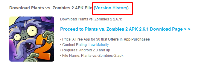 Hi to all, how are you? When i was searching about apk files I found a site which is about android apk files. I am amazed when i see there is a version history of every post, Suppose "Plants vs. Zombies" has current version 2 2.6.1 what about its old version. On that link http://www.apk4fun.com/games/com.ea.game.pvz2_row/ i found an internal link which tells about Plants vs. Zombies's old versions. I am attaching a snapshot i think it is due to a plugin so if anyone know about that plugin or about that method please let me know i will be thankful. Looking a good reply from experts. Thanks in advance