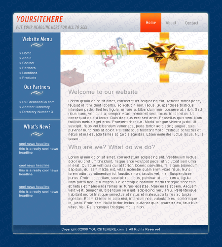 Hello I made a web 2.0 style template from scratch. This is FULLY cut. It is at 50% with a watermark to ensure the template isn't stolen. http://img.photobucket.com/albums/v478/robertg0123/Template726.png I am offering this template in various ways. PLEASE NOTE: I am selling this template up to 5 times unless you purchase full copyright rights. PSD - $50 Coded - $100 PSD (with resale rights) - $75 Coded (with resale rights) - $125 BOTH (with resale rights) - $150 Copyright Rights (includes both PSD and Coded template with resale rights. Also removes this product from sale in the future) - $300 If you are going to purchase resale rights after purchasing the template it will be $30. Purchasing it with resale rights saves you $5. TERMS OF USE (without resale rights): By purchasing this template you, the buyer, agree that you will not distribute this template in any way to any other person but yourself. You agree that if you are found selling this template you can be sued for up to $2,000. You agree that payment will be sent before the template is sent to your E-mail or through MSN messenger. You agree that after the transaction is completed IT IS FINAL. Any disputes brought up through PayPal will be linked back to this page and can easily be proven. You agree that I am allowed to record ANY outside conversations and for it to be used as I wish. TERMS OF USE (with resale rights): By purchasing this template you, the buyer, agree that payment will be sent before the template is sent to your E-mail or through MSN messenger. You agree that after the transaction is complete IT IS FINAL. Any disputes brought up through PayPal will be linked back to this page and can easily be proven. You agree that I am allowed to record ANY outside conversations and for it to be used as I wish. Privacy Policy: By selling a product, we must collect some personal information about the buyer. We agree that we will not use ANY of this information or distribute any of this information to any third-party. Your information is confidential and only allowed in the eyes of myself and whatever administrators in this corporation wish to see it. If any of the terms listed on the Terms of Use are broken, your information may no longer be safe. If this situation occurs your information most likely will be given to local police, a lawyer, the DP administration, and/or the PayPal administration in order to dispute any wrong doings.