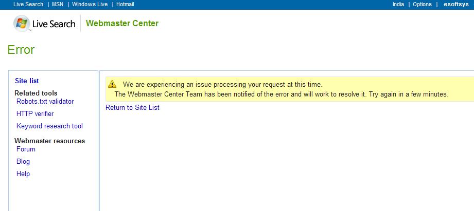 Hi Guys.. Today while i was submitting Site map for Google, Live, yahoo.. i found Live webmaster is facing some prob ....ARE you guys having same prob ?? Please check image attached for ISSUE with Live Webmaster ..