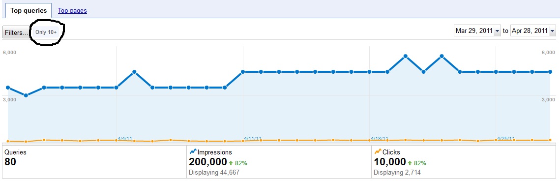 its look like there is some competition on the keyword's huge diff b/w impression and clicks you need to build back links