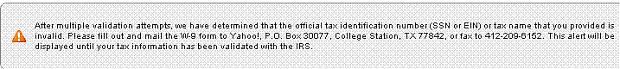 I posted a thread here few days back ( can see in my signature) explaining I forgot my password to ypn account! Somehow I managed to recall the pass and now able to login When I login to the account there is an alert at top. ((Snap attached to the thread)). I a not a us citizen and this account is simple useless for me If I give the account to any us citizen and he fills the W-8 form with his own SSN /EIN and Tax name ( payee name) and fax them will it work for him?