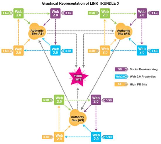 It is a kind of link wheel. In link trundle, links are established between your site and authority sites which in themselves contain back links from multiple Web 2.0 property sites and this will help your site more exposure
