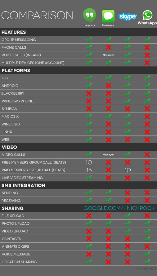 Generally I prefer iMessage (because I can use it from both my computer and my phone), but for people who don't have apple devices I always use WhatsApp. P.S. That inforgraphic is a little bit off. You can totally share gifs, videos, and photos through iMessage.