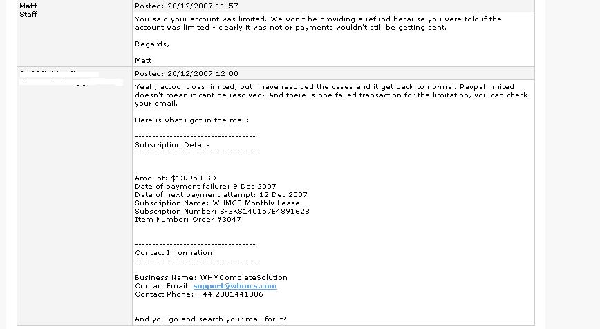 I m really stuck after seeing such a reply from Matt, that "Its your duty to cancel the subscription, we cant refund your money". Cheap matt, you like to charge for an expired license :) Have anyone faced the same sort of thing from whmcs?