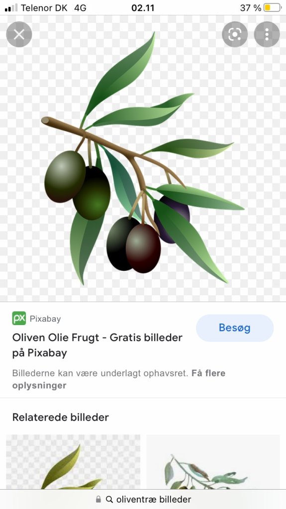 He have sent some inspiration. I think a bit if you try a draft with the olive branch itself with green leaves and green olives and maybe one with black olives, to look at it. Hope the pictures can help.