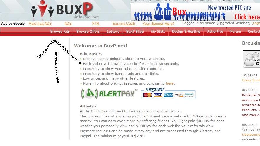 Is it a new site? your alexa ranking is way over 8.6 million http://www.alexa.com/data/details/main/buxp.net Buxp.net has a traffic rank of: 8,683,809 Even my site which has 1000/1100 users a day has alexa rank around 320k