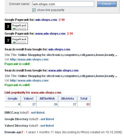[WTS] win-shops.COM | valid PR 2 | 1 y.o.